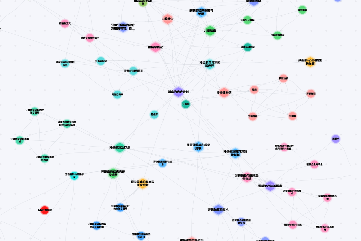 面对传统教学中知识零散、临床思维训练不足等痛点,课程团队首创“横向多学科整合、纵向全周期健康管理、垂直疾病模块重组”的三维知识体系,建成涵盖1000多个知识节点的7级细粒度知识图谱。依托智慧树平台,开发症状导向的智能诊疗训练系统,支持学生开展“云学习—虚拟仿真—临床实操”递进式训练,有效突破时空限制,提升课程的高阶性与挑战度。